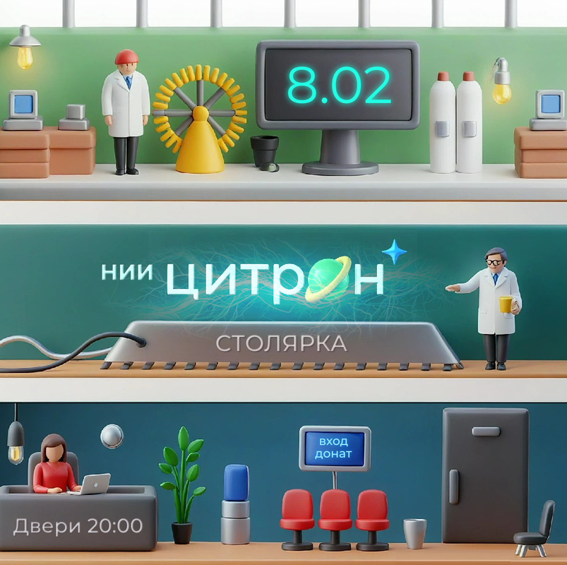 Дата: 8 февраля Название: НИИ ЦИТРОН в СТОЛЯРКА Участники: Цитрон Место: Столярка Время начала: 20:00 Цена: донат ![]() Научно-испытательный институт Центра Исследований Творческого Развития Оптимистического Направления приглашает вас принять участие в очередном музыкальном эксперименте. Мы, НИИ ЦИТРОН, проведём концерт в муз-полигоне СТОЛЯРКА (Специальная Территория Опытных Легких Явлений Регулируемых Классной Аудиторией). Прозвучат произведения, во время которых вы сможете проверить гипотезы счастья и веселья, ощутить силу вибрации и танца, сделать окрытия для души и сердца. ЦИТРОН в Столярке. 8 февраля. Двери в 20, вход донат. https://vk.com/niicitron |